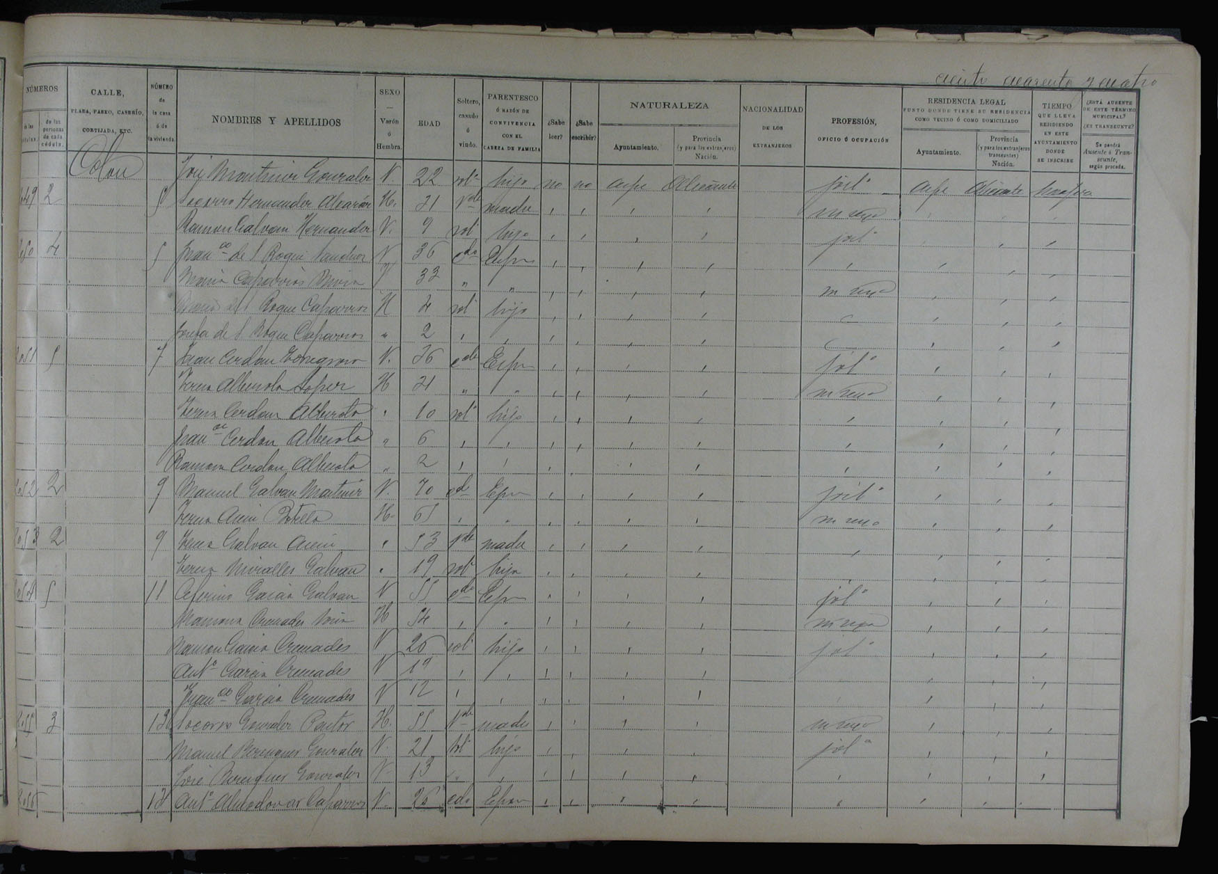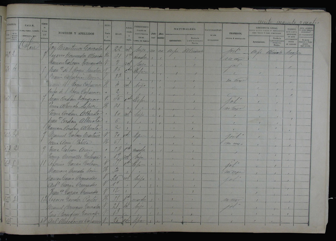 Padrón de habitantes, 1900