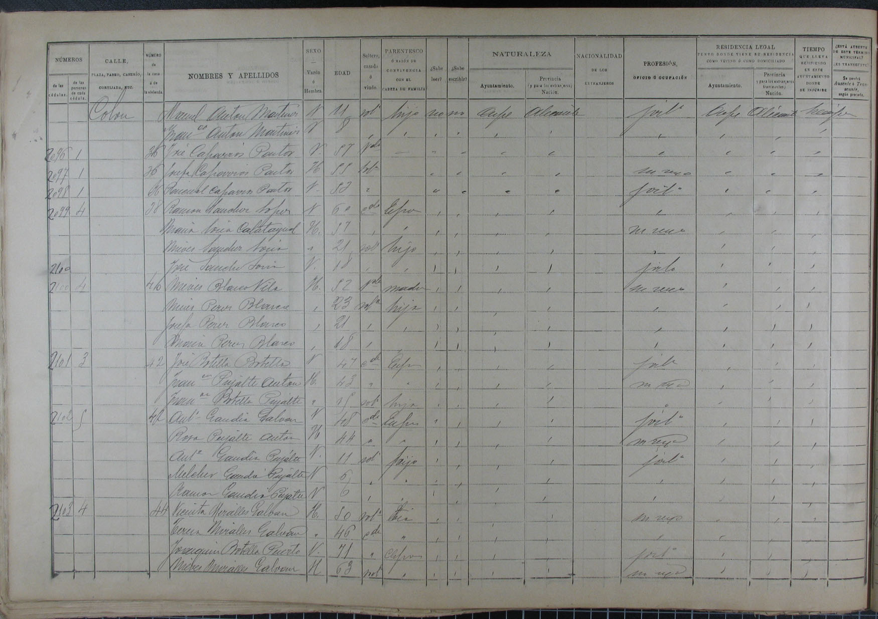 Padrón de habitantes, 1900