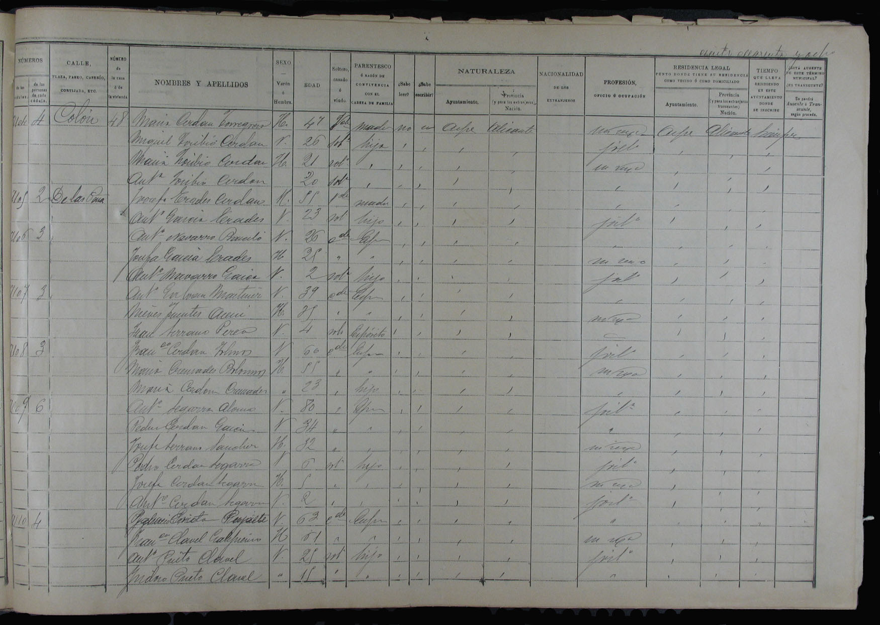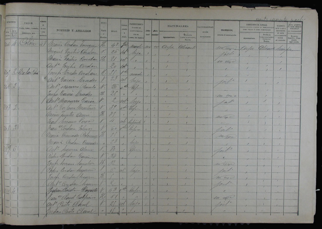 Padrón de habitantes, 1900