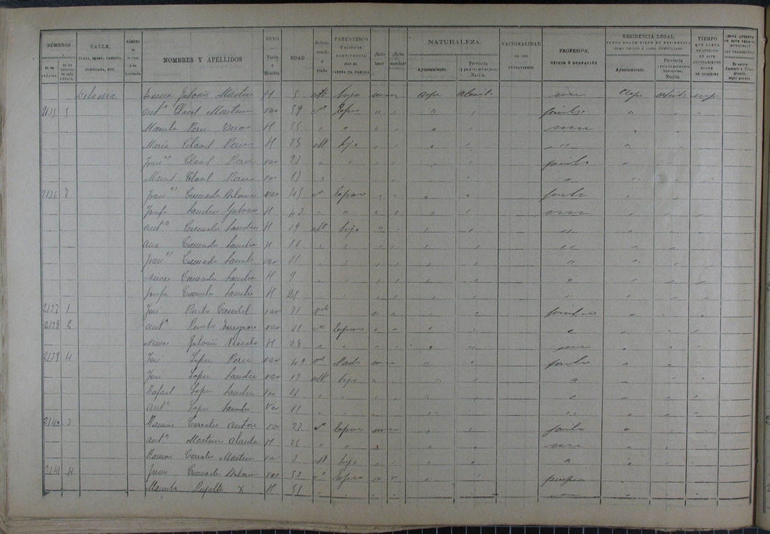 Padrón de habitantes, 1900
