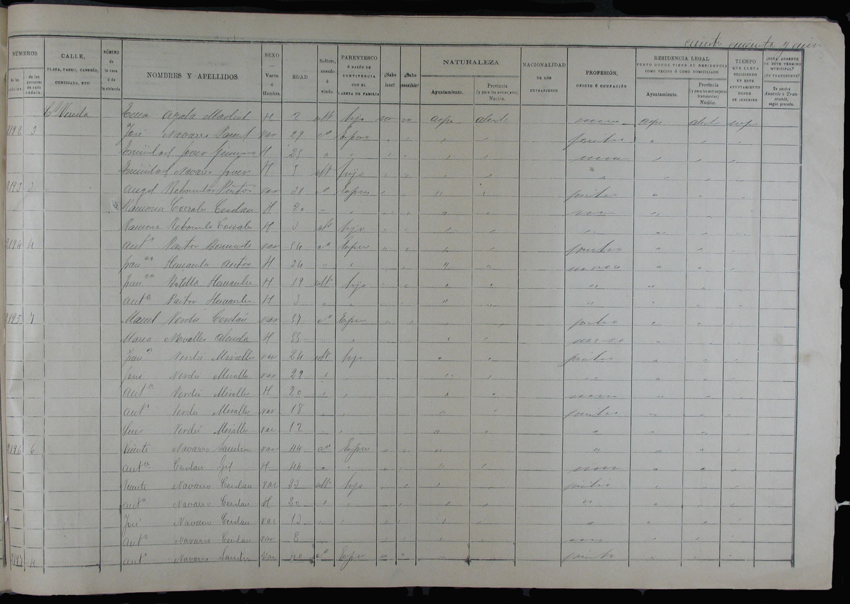 Padrón de habitantes, 1900