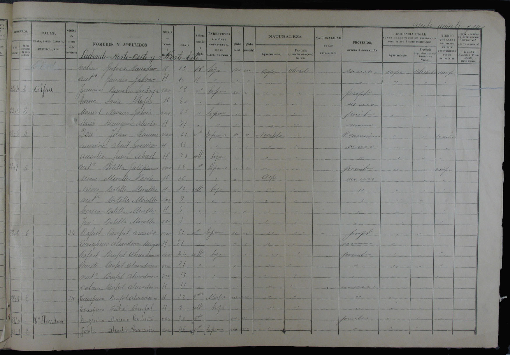 Padrón de habitantes, 1900