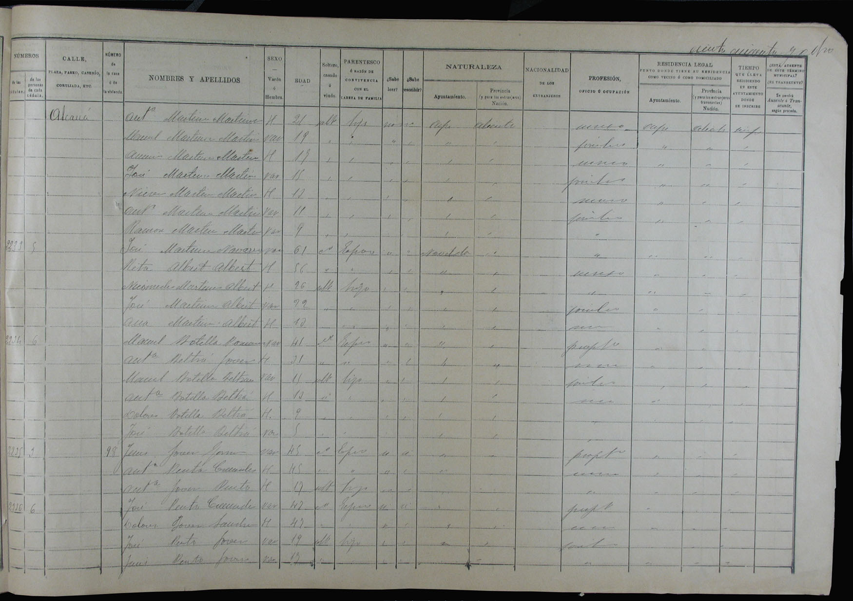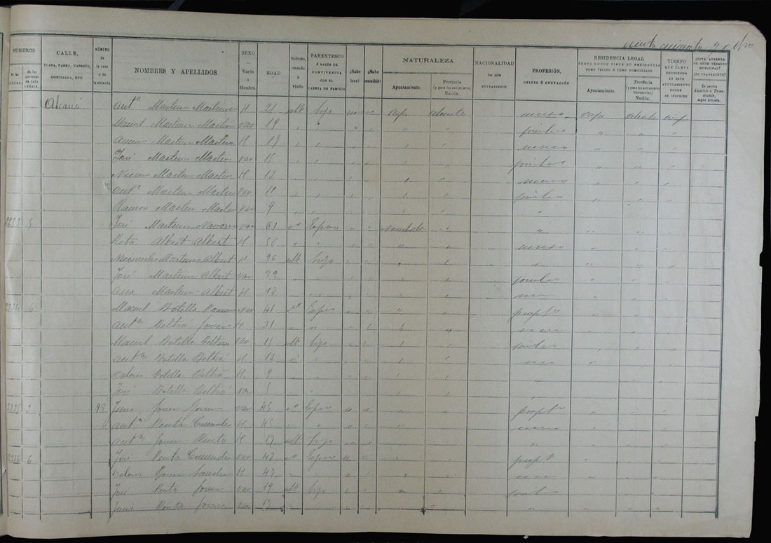 Padrón de habitantes, 1900