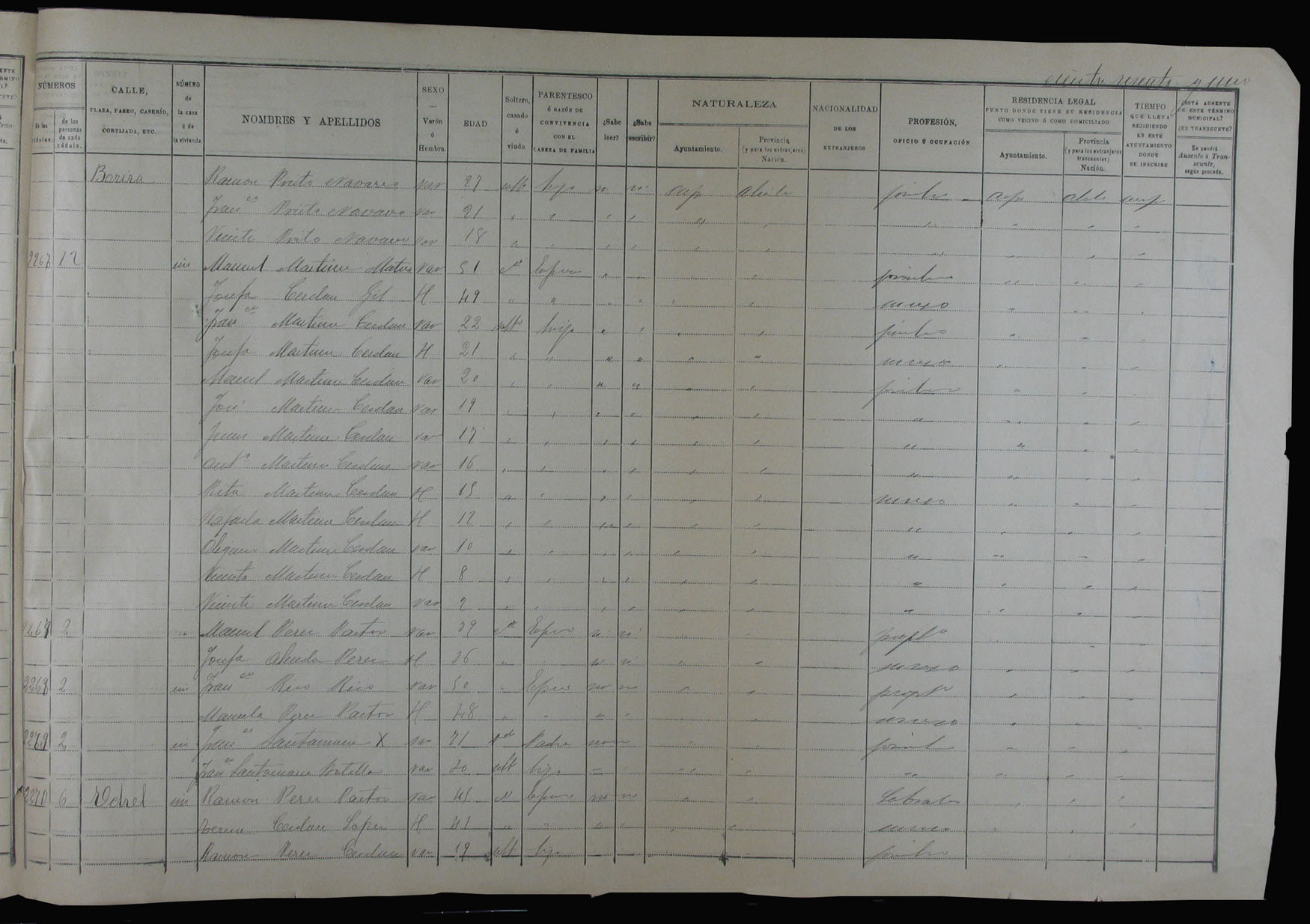 Padrón de habitantes, 1900