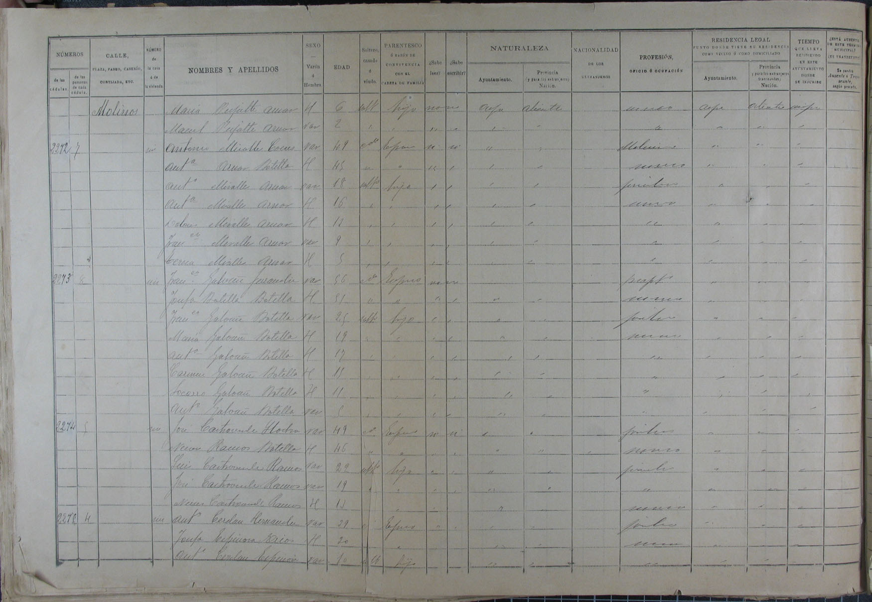 Padrón de habitantes, 1900
