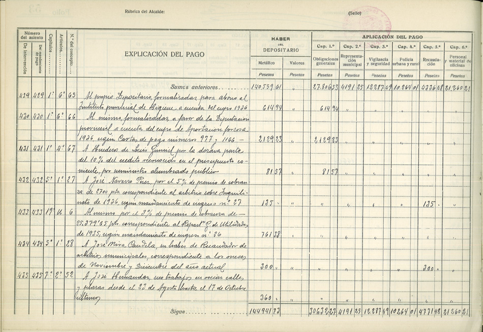 Diario de Intervención de Pagos, 1936