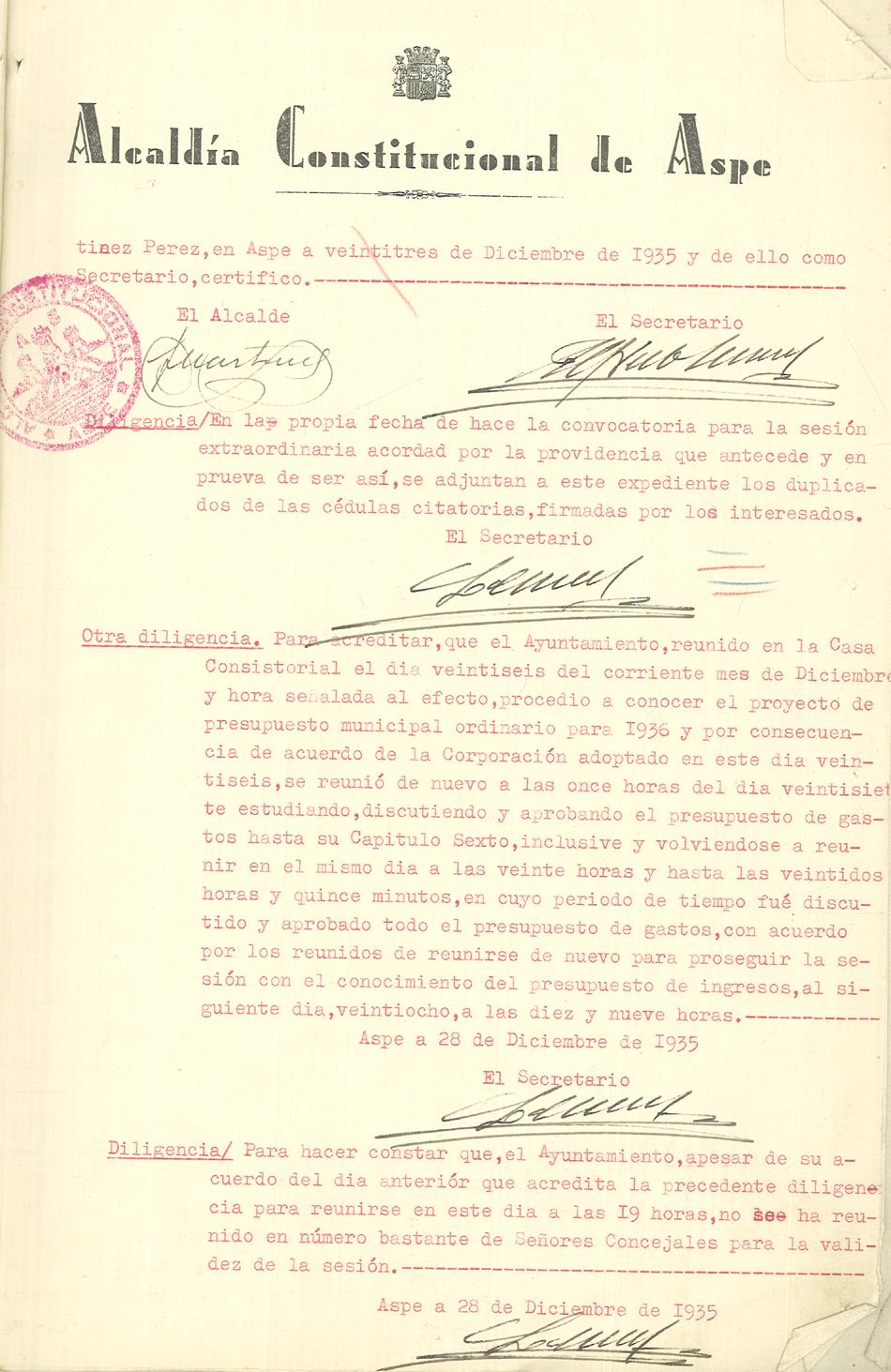 Presupuesto municipal ordinario del Ayuntamiento de Aspe para el año 1936