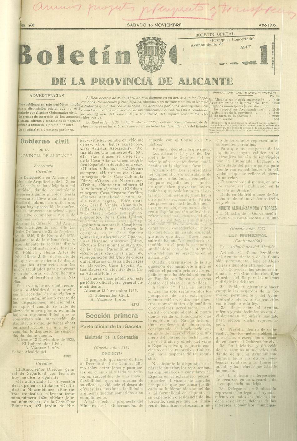 Presupuesto municipal ordinario del Ayuntamiento de Aspe para el año 1936