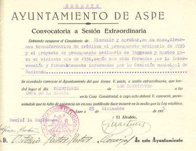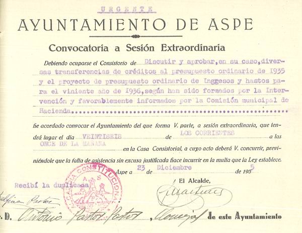 Presupuesto municipal ordinario del Ayuntamiento de Aspe para el año 1936