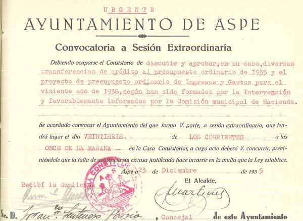 Presupuesto municipal ordinario del Ayuntamiento de Aspe para el año 1936