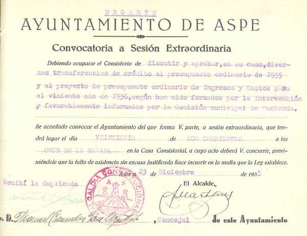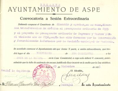 Presupuesto municipal ordinario del Ayuntamiento de Aspe para el año 1936