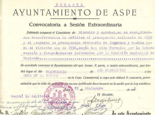 Presupuesto municipal ordinario del Ayuntamiento de Aspe para el año 1936