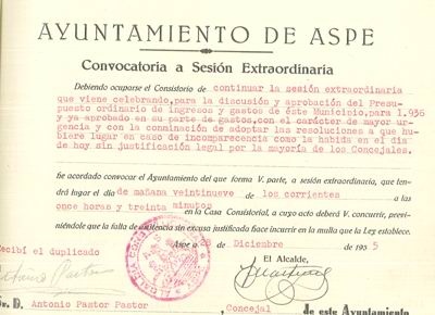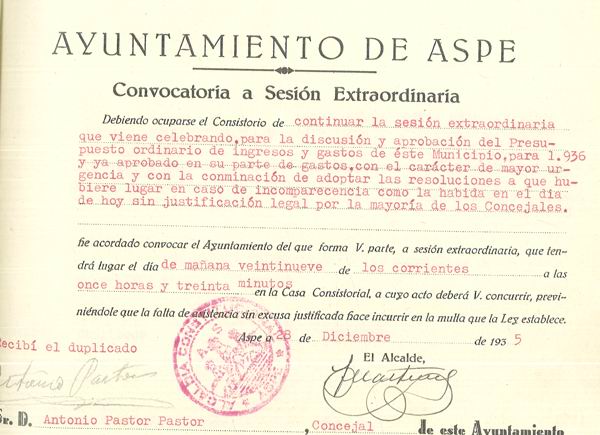 Presupuesto municipal ordinario del Ayuntamiento de Aspe para el año 1936