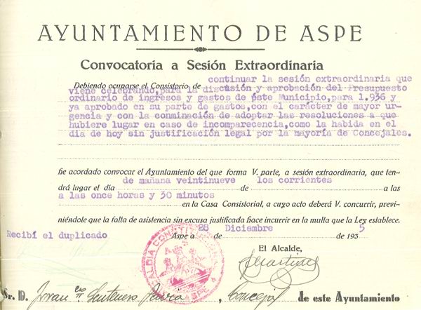 Presupuesto municipal ordinario del Ayuntamiento de Aspe para el año 1936