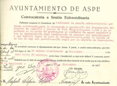 Presupuesto municipal ordinario del Ayuntamiento de Aspe para el año 1936
