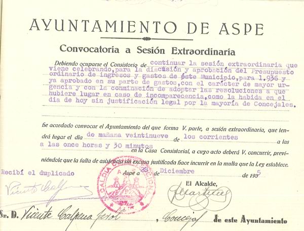 Presupuesto municipal ordinario del Ayuntamiento de Aspe para el año 1936