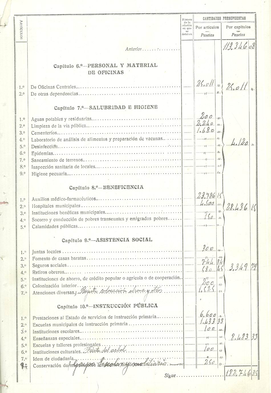 Presupuesto municipal ordinario del Ayuntamiento de Aspe para el año 1936
