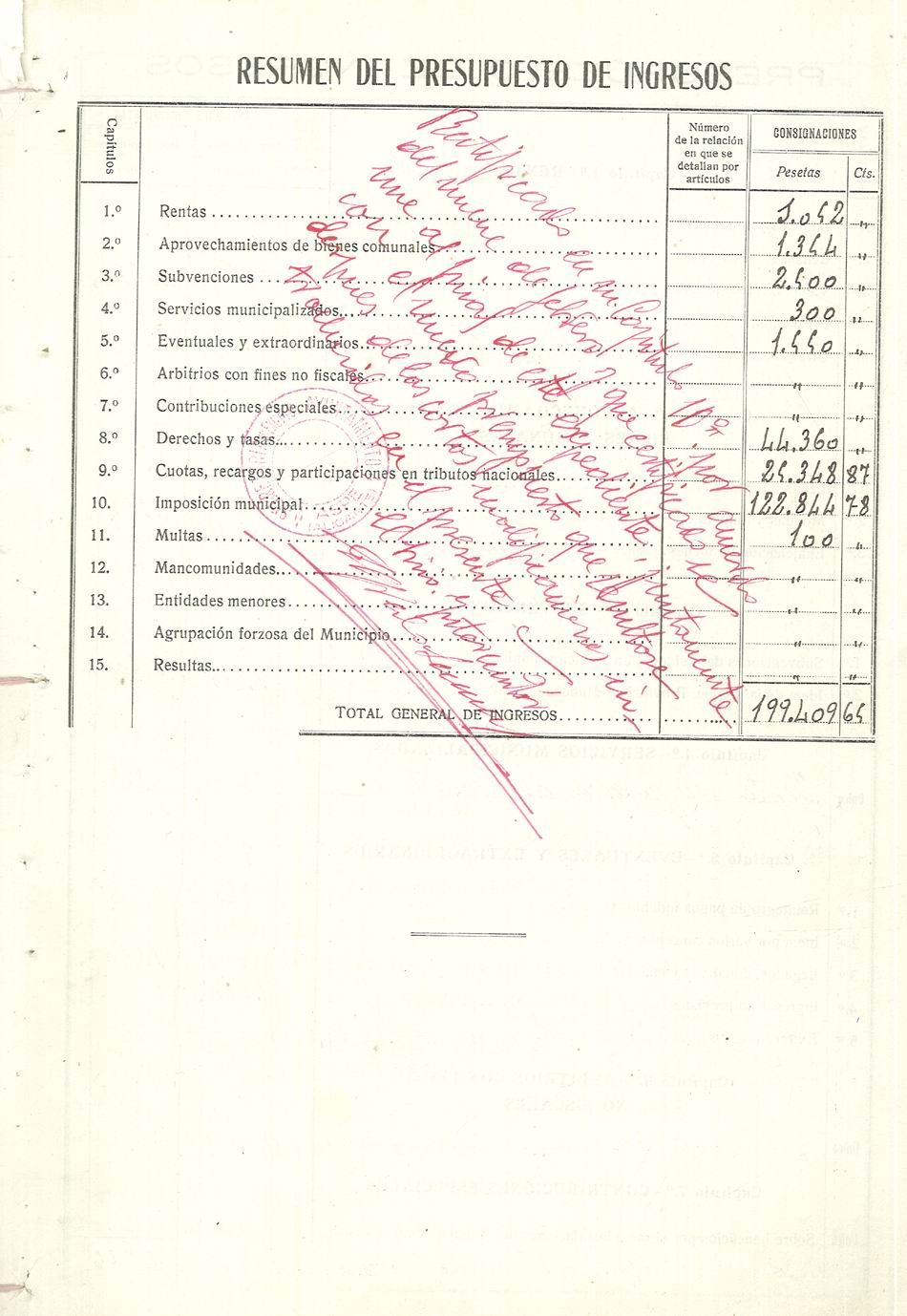 Presupuesto municipal ordinario del Ayuntamiento de Aspe para el año 1936