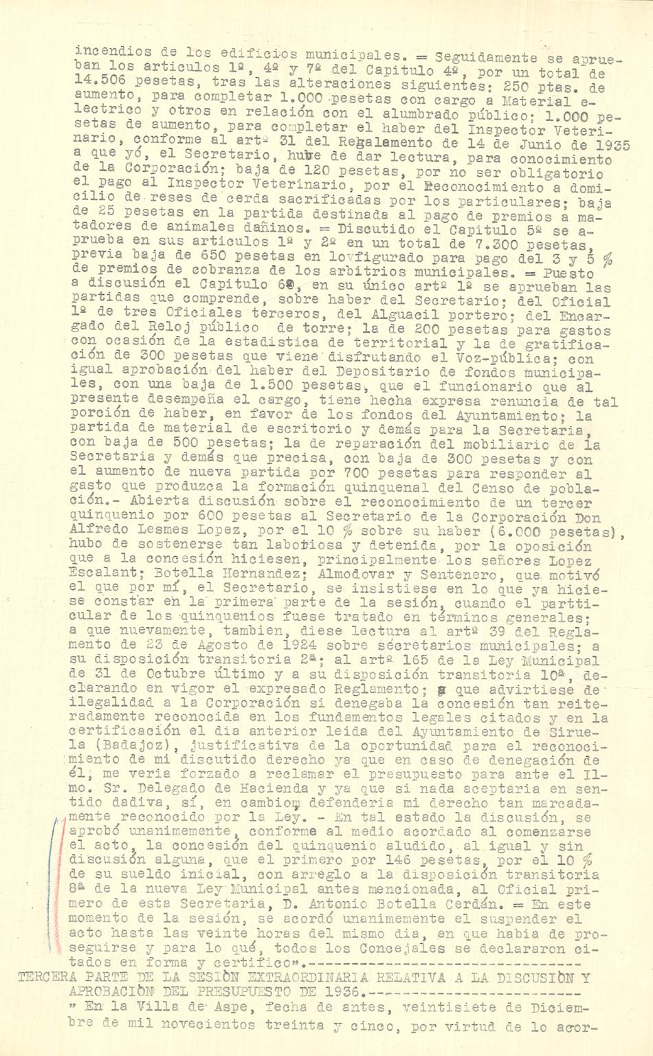 Presupuesto municipal ordinario del Ayuntamiento de Aspe para el año 1936