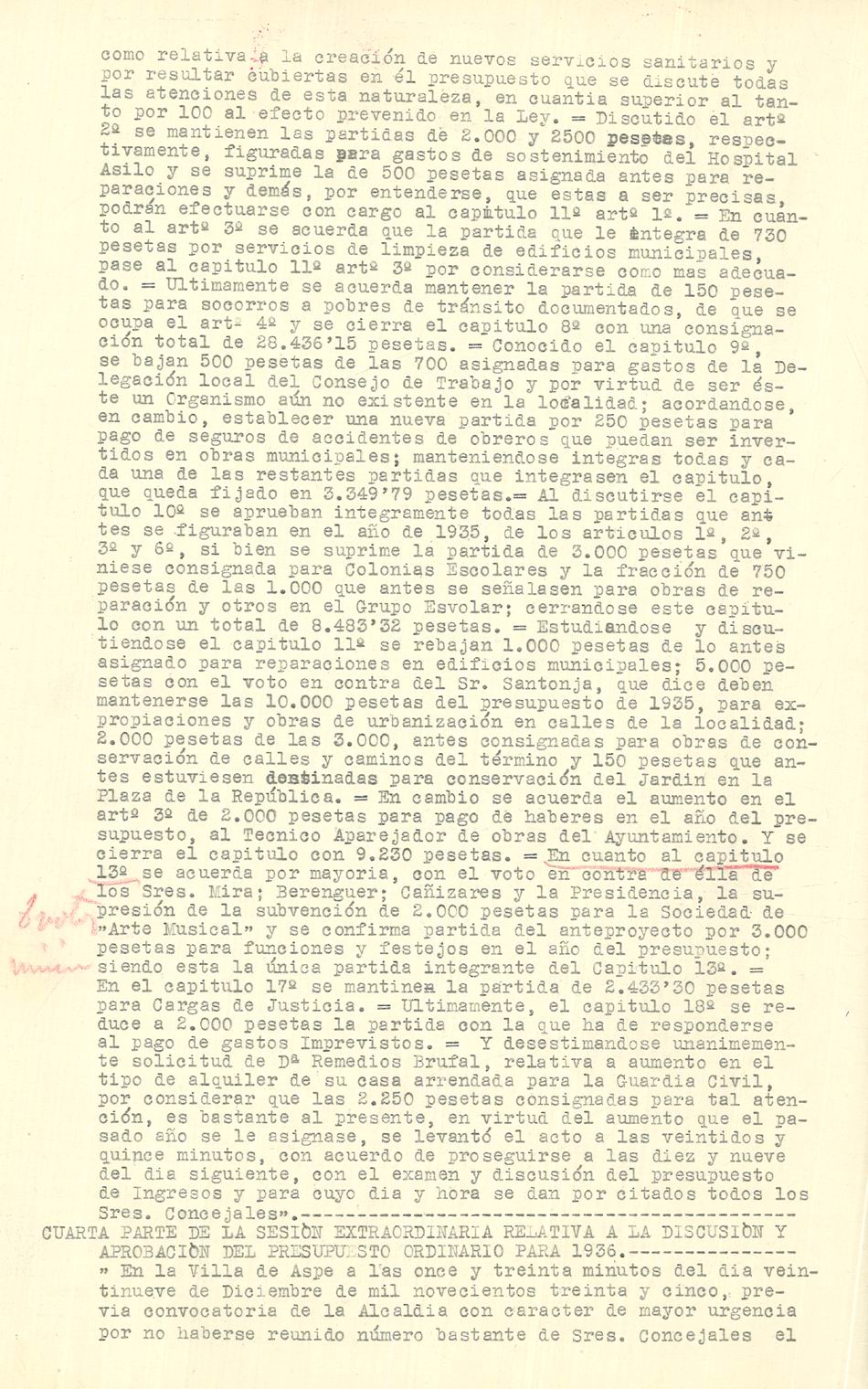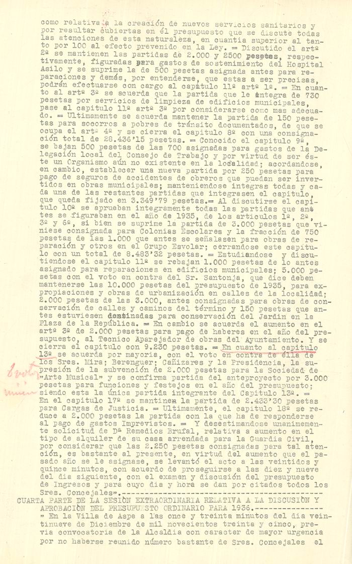 Presupuesto municipal ordinario del Ayuntamiento de Aspe para el año 1936