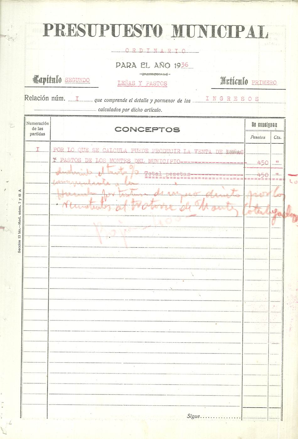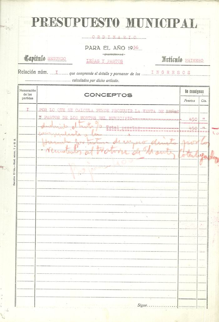 Presupuesto municipal ordinario del Ayuntamiento de Aspe para el año 1936