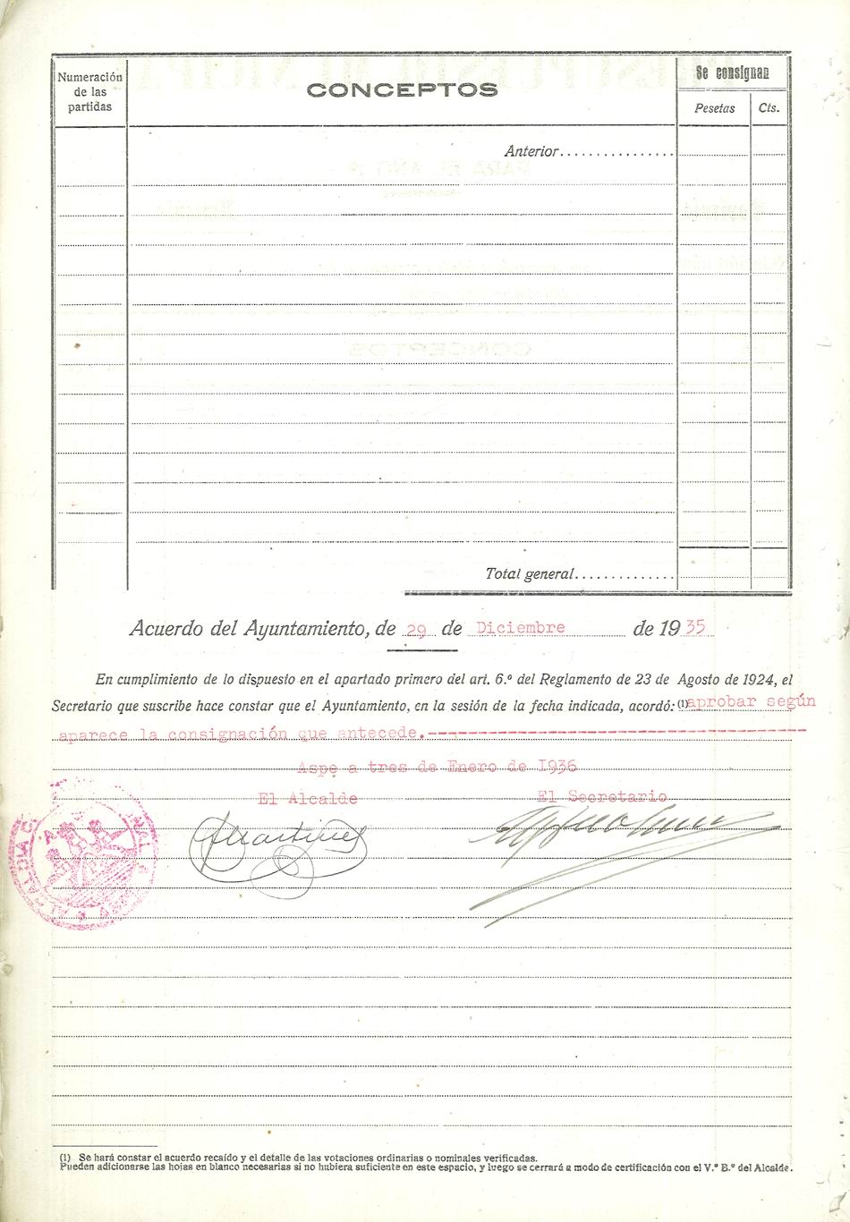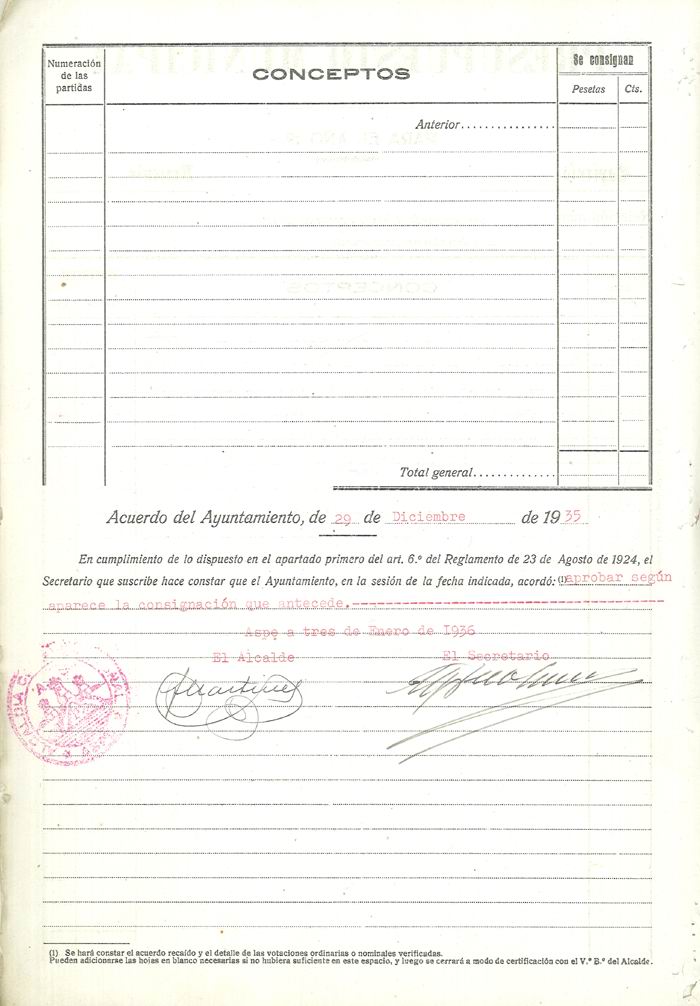 Presupuesto municipal ordinario del Ayuntamiento de Aspe para el año 1936