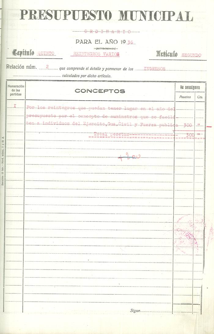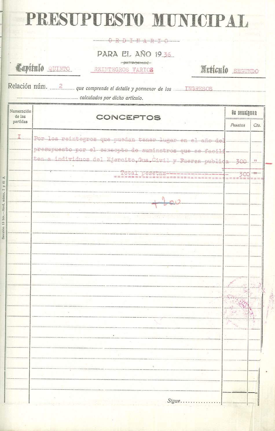 Presupuesto municipal ordinario del Ayuntamiento de Aspe para el año 1936