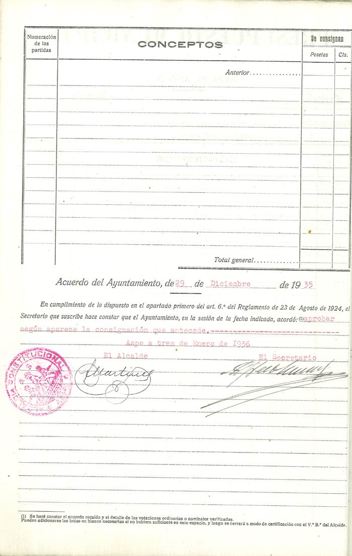 Presupuesto municipal ordinario del Ayuntamiento de Aspe para el año 1936