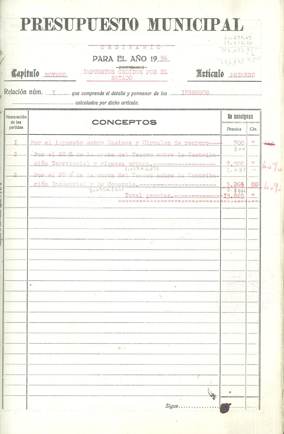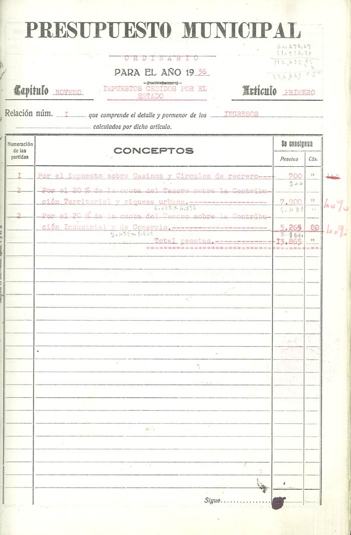 Presupuesto municipal ordinario del Ayuntamiento de Aspe para el año 1936