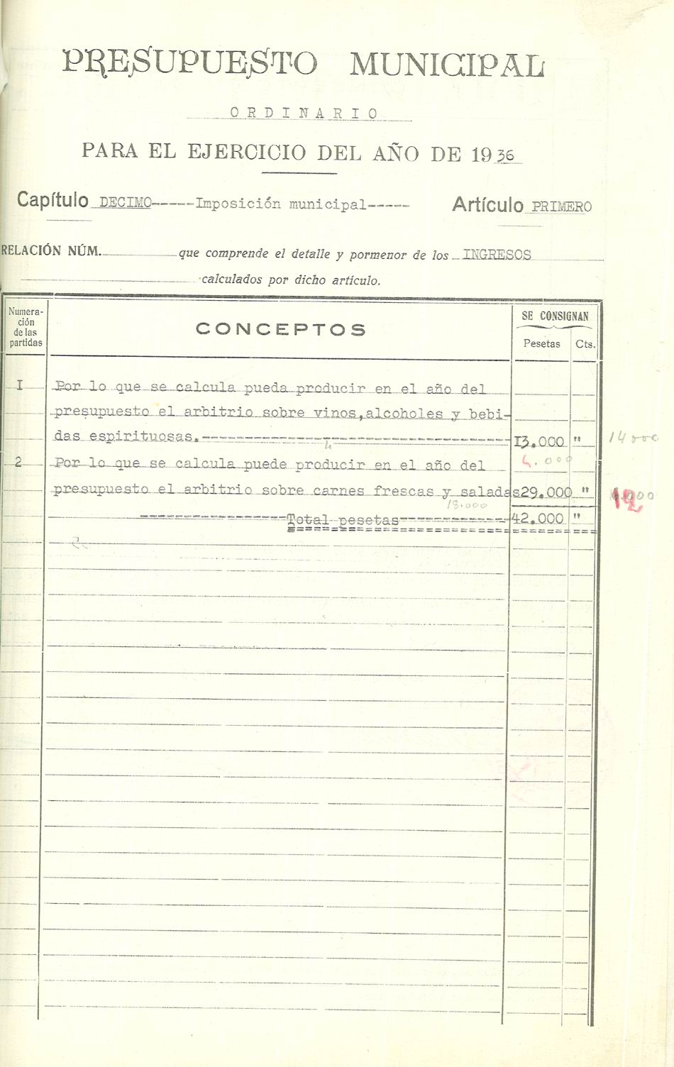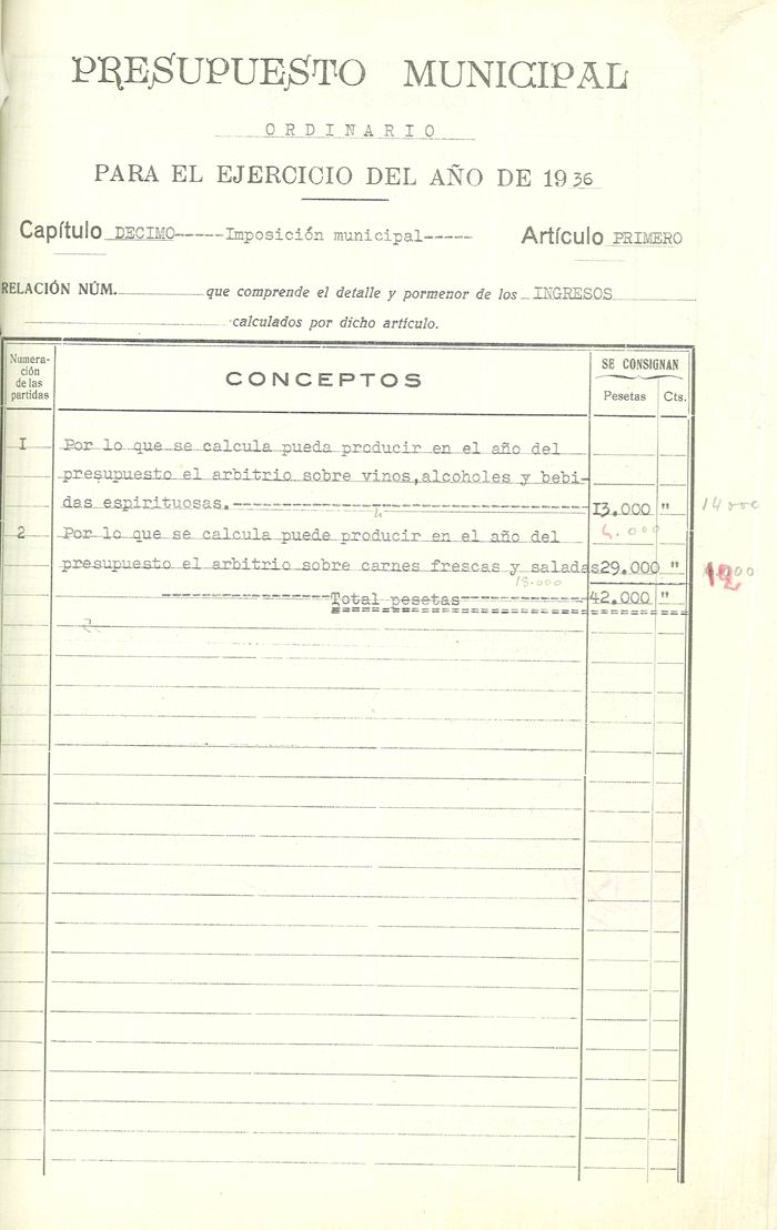 Presupuesto municipal ordinario del Ayuntamiento de Aspe para el año 1936