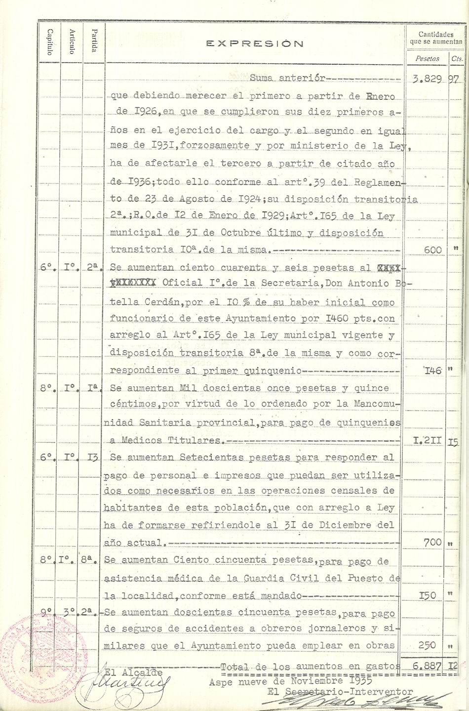 Presupuesto municipal ordinario del Ayuntamiento de Aspe para el año 1936