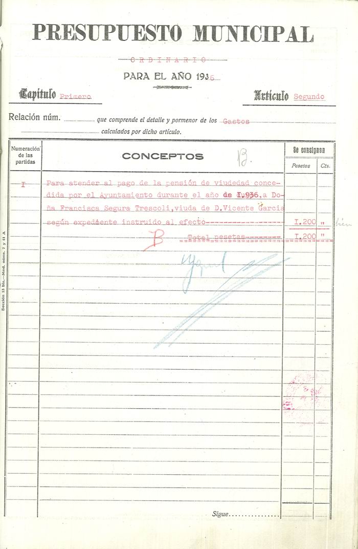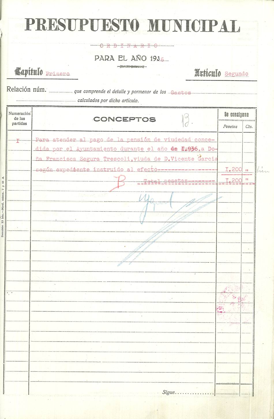 Presupuesto municipal ordinario del Ayuntamiento de Aspe para el año 1936