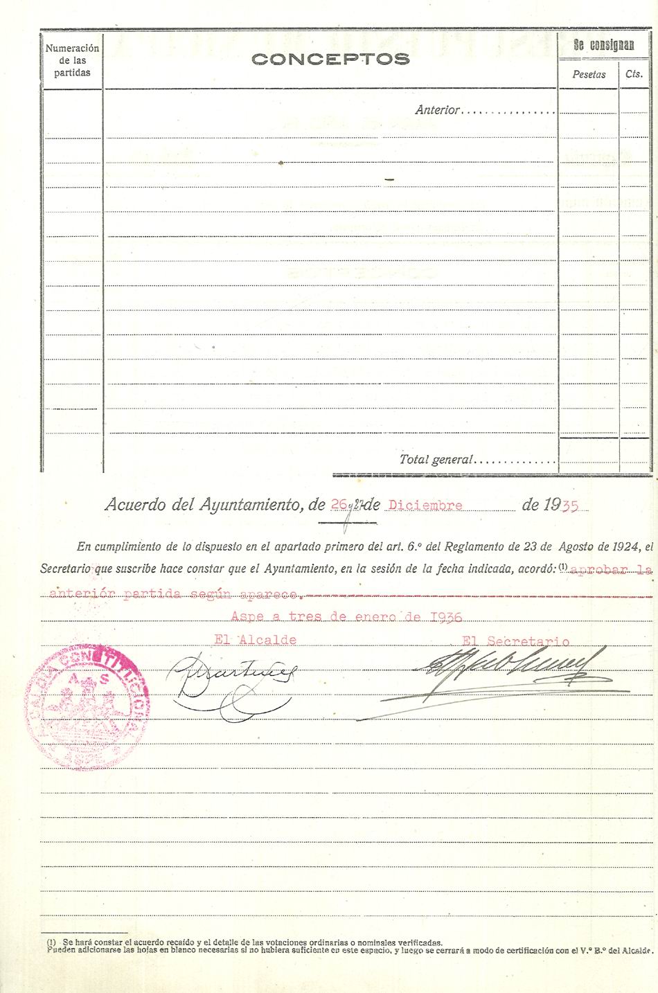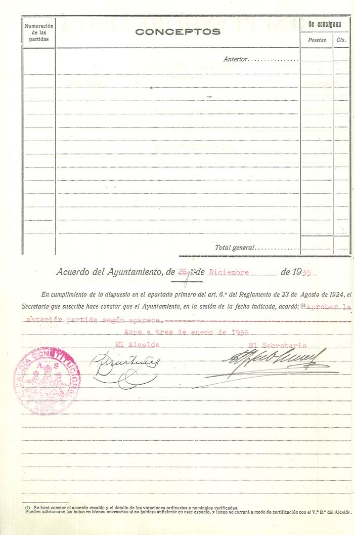 Presupuesto municipal ordinario del Ayuntamiento de Aspe para el año 1936