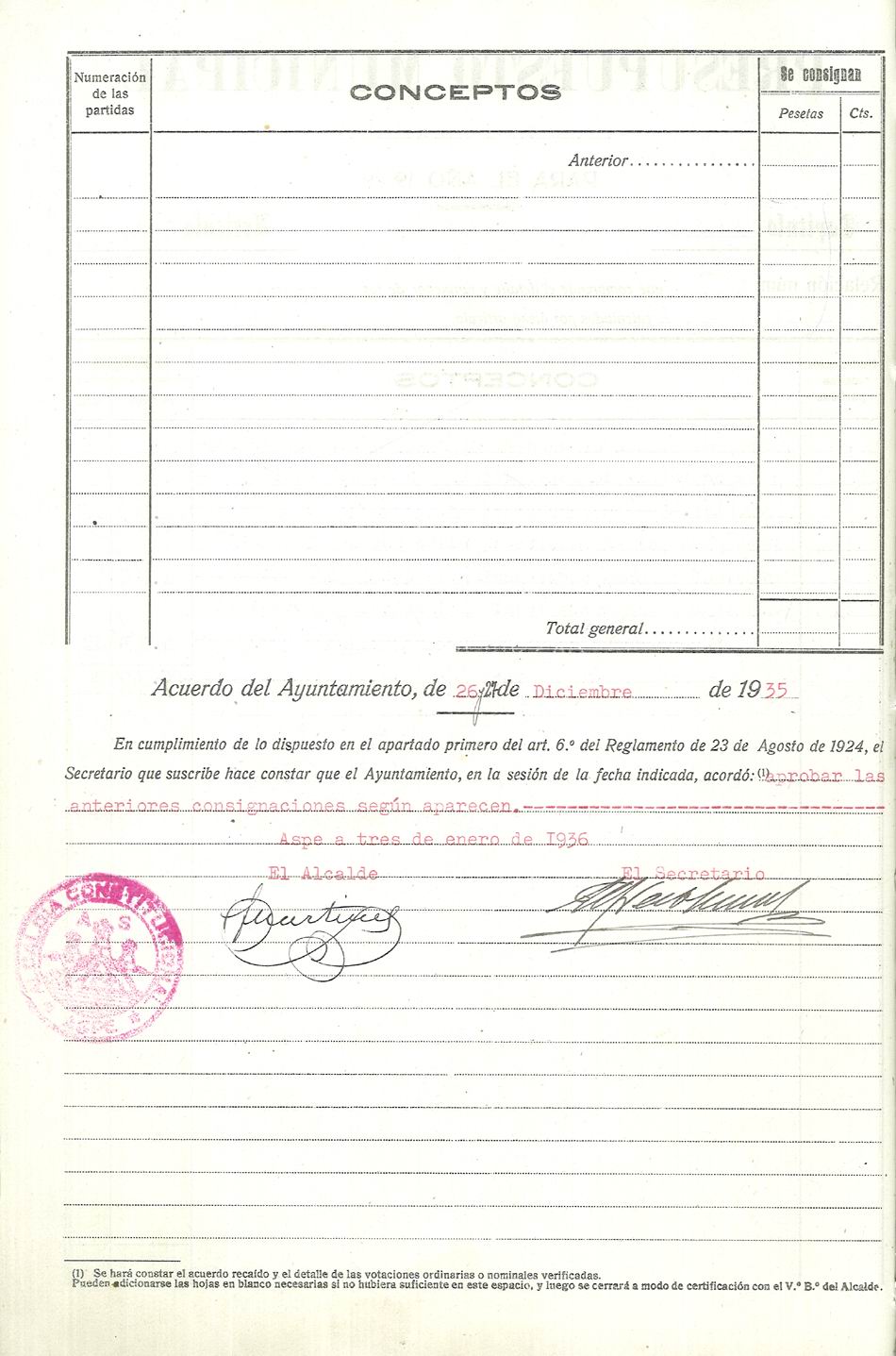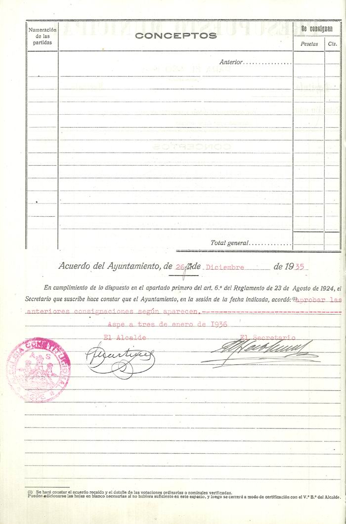 Presupuesto municipal ordinario del Ayuntamiento de Aspe para el año 1936