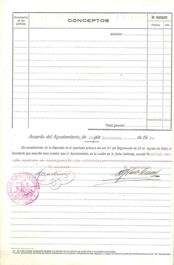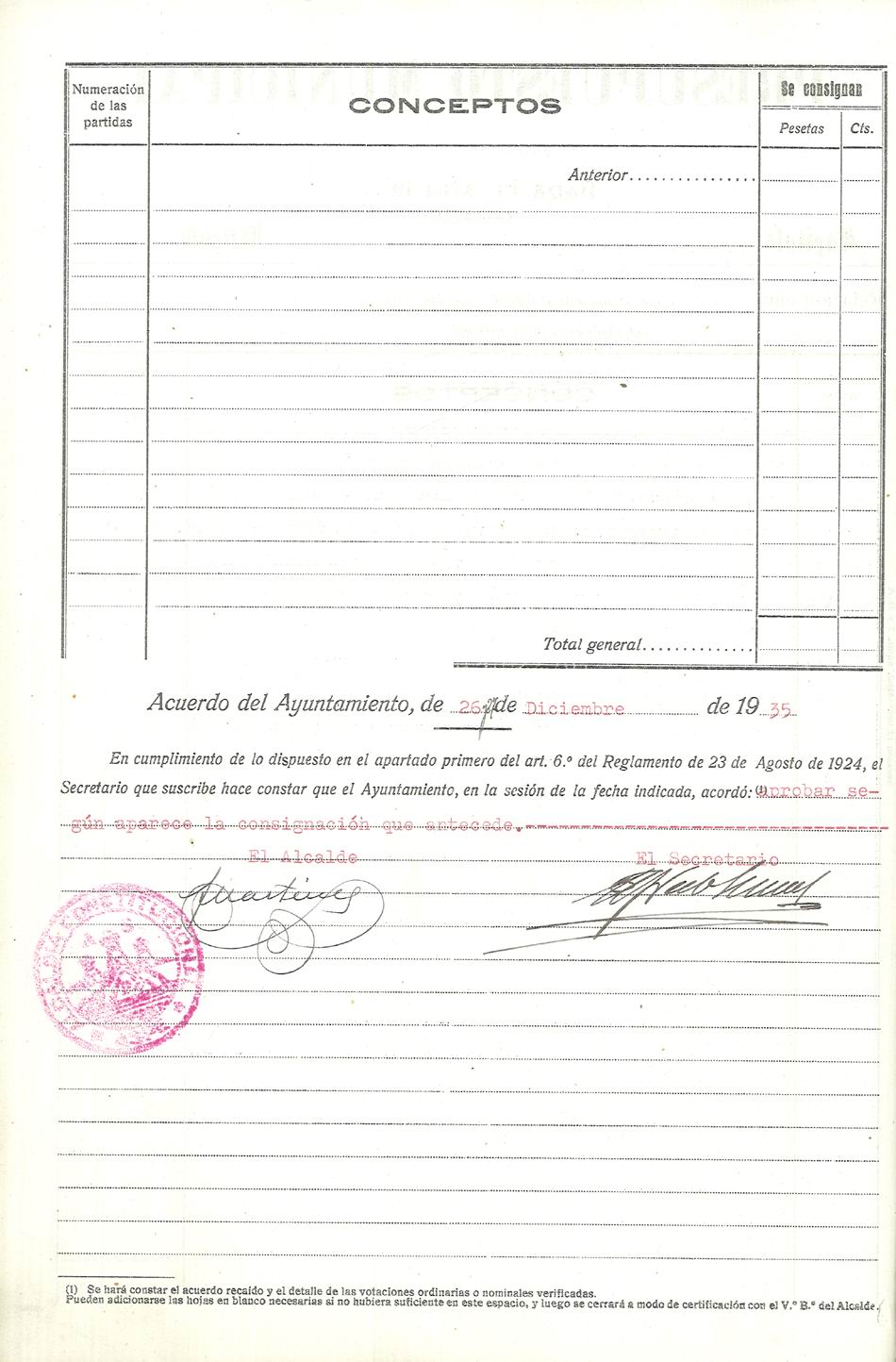 Presupuesto municipal ordinario del Ayuntamiento de Aspe para el año 1936