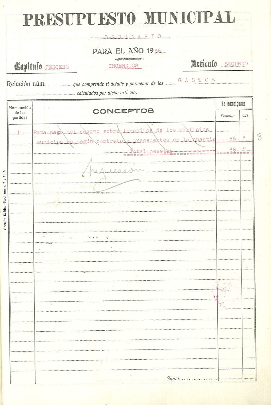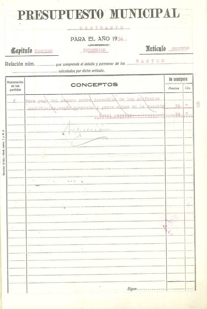 Presupuesto municipal ordinario del Ayuntamiento de Aspe para el año 1936