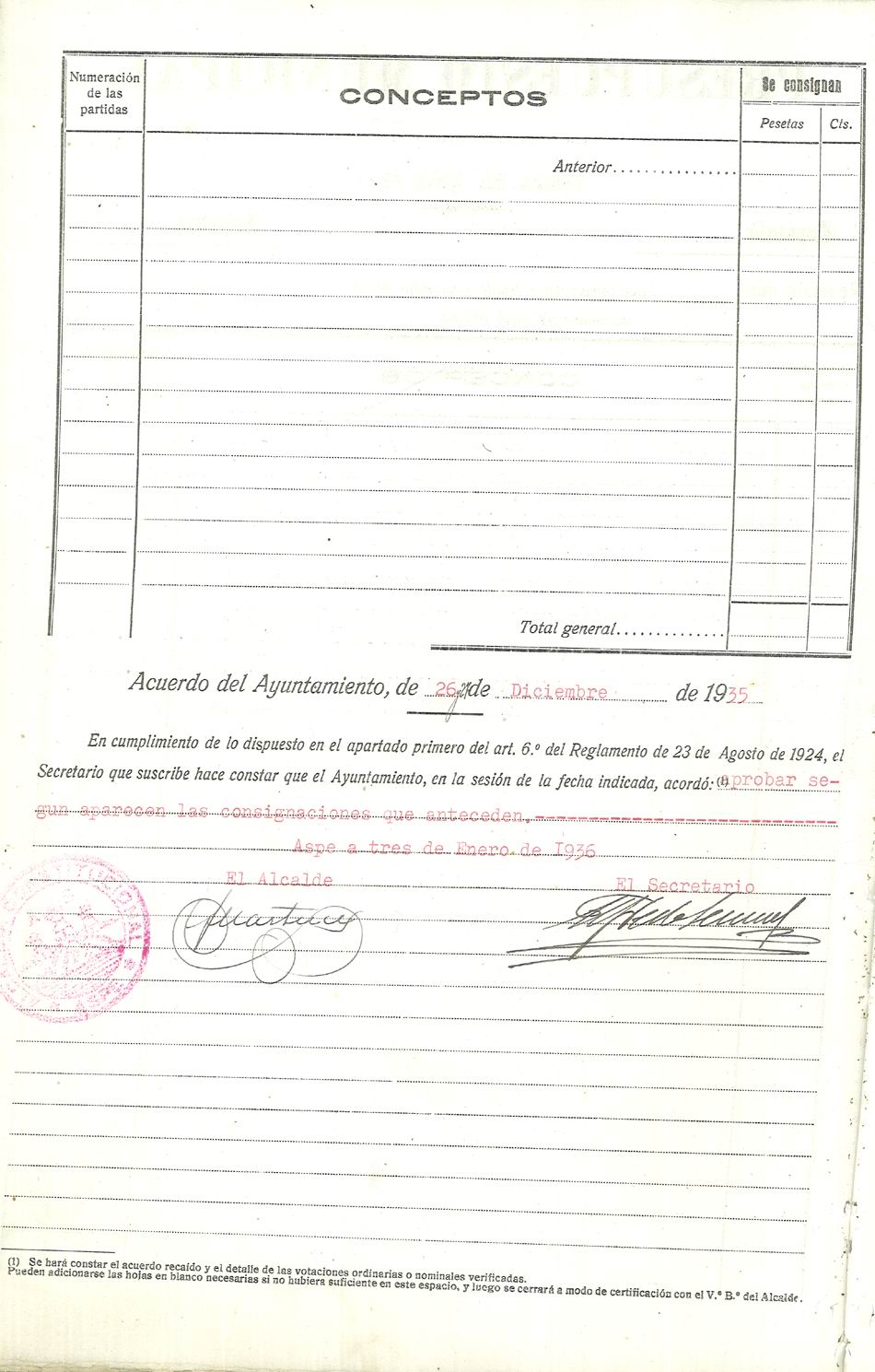 Presupuesto municipal ordinario del Ayuntamiento de Aspe para el año 1936