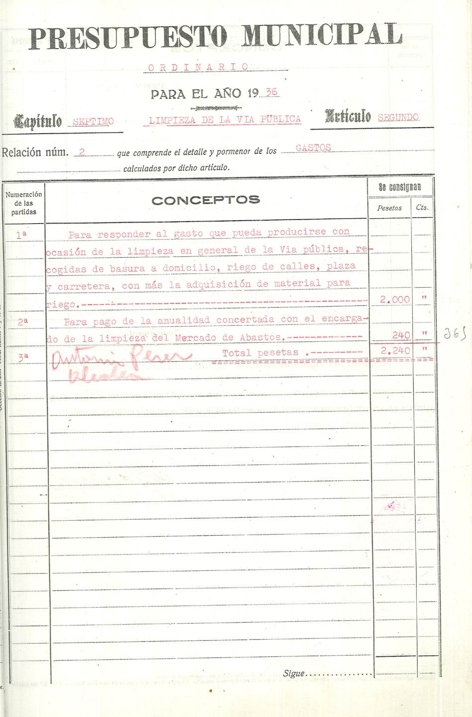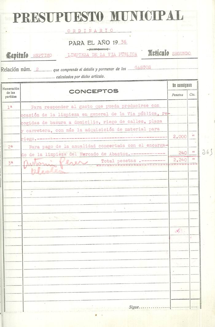 Presupuesto municipal ordinario del Ayuntamiento de Aspe para el año 1936