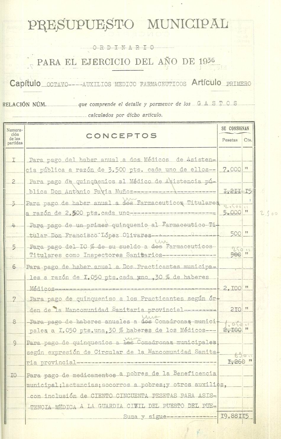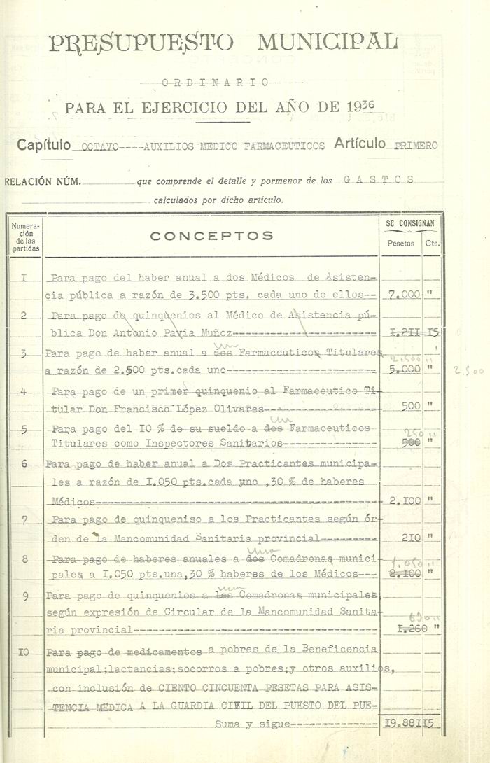 Presupuesto municipal ordinario del Ayuntamiento de Aspe para el año 1936