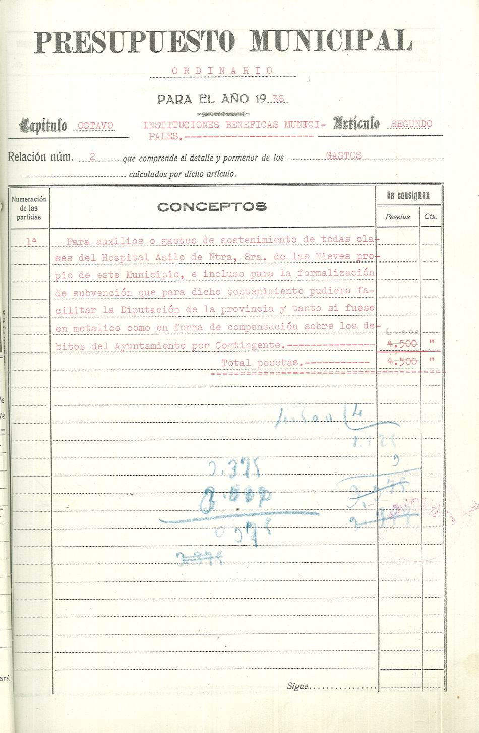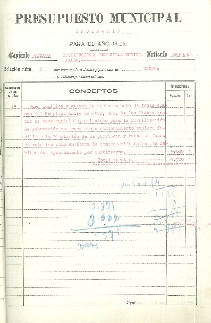 Presupuesto municipal ordinario del Ayuntamiento de Aspe para el año 1936