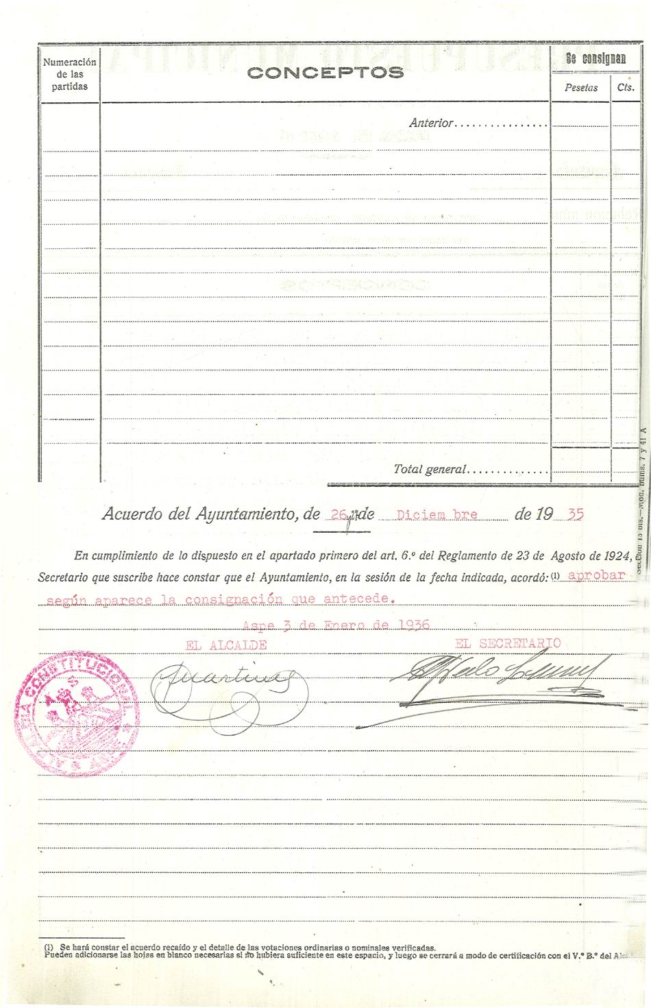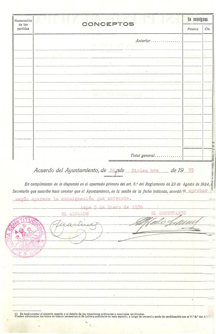 Presupuesto municipal ordinario del Ayuntamiento de Aspe para el año 1936