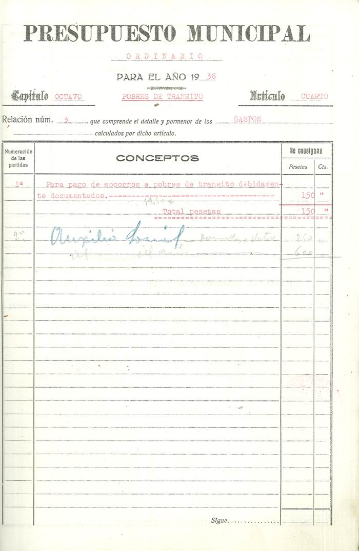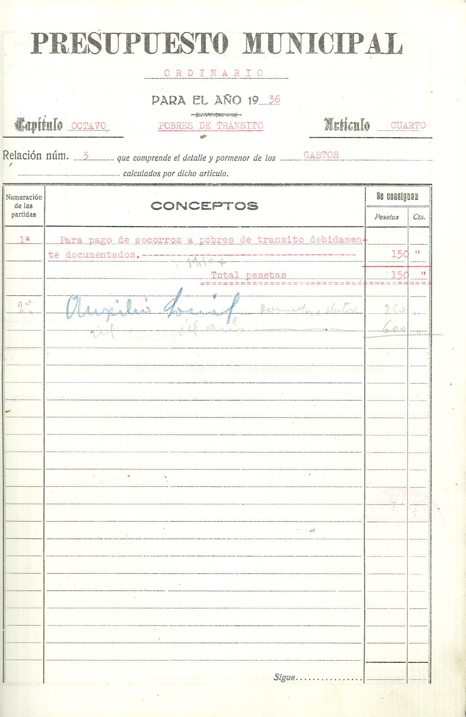 Presupuesto municipal ordinario del Ayuntamiento de Aspe para el año 1936