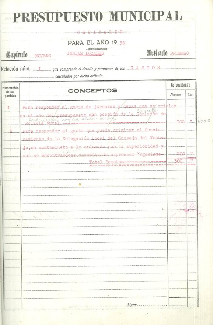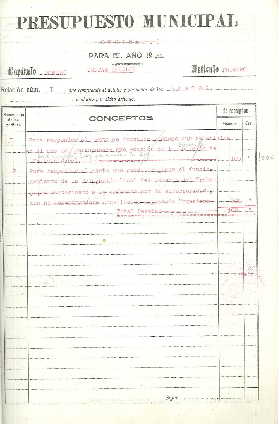 Presupuesto municipal ordinario del Ayuntamiento de Aspe para el año 1936