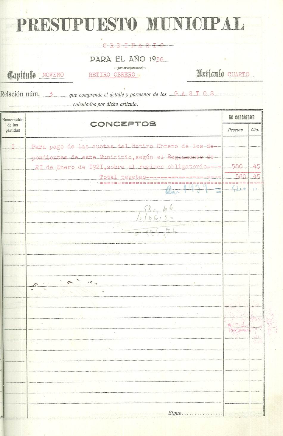 Presupuesto municipal ordinario del Ayuntamiento de Aspe para el año 1936