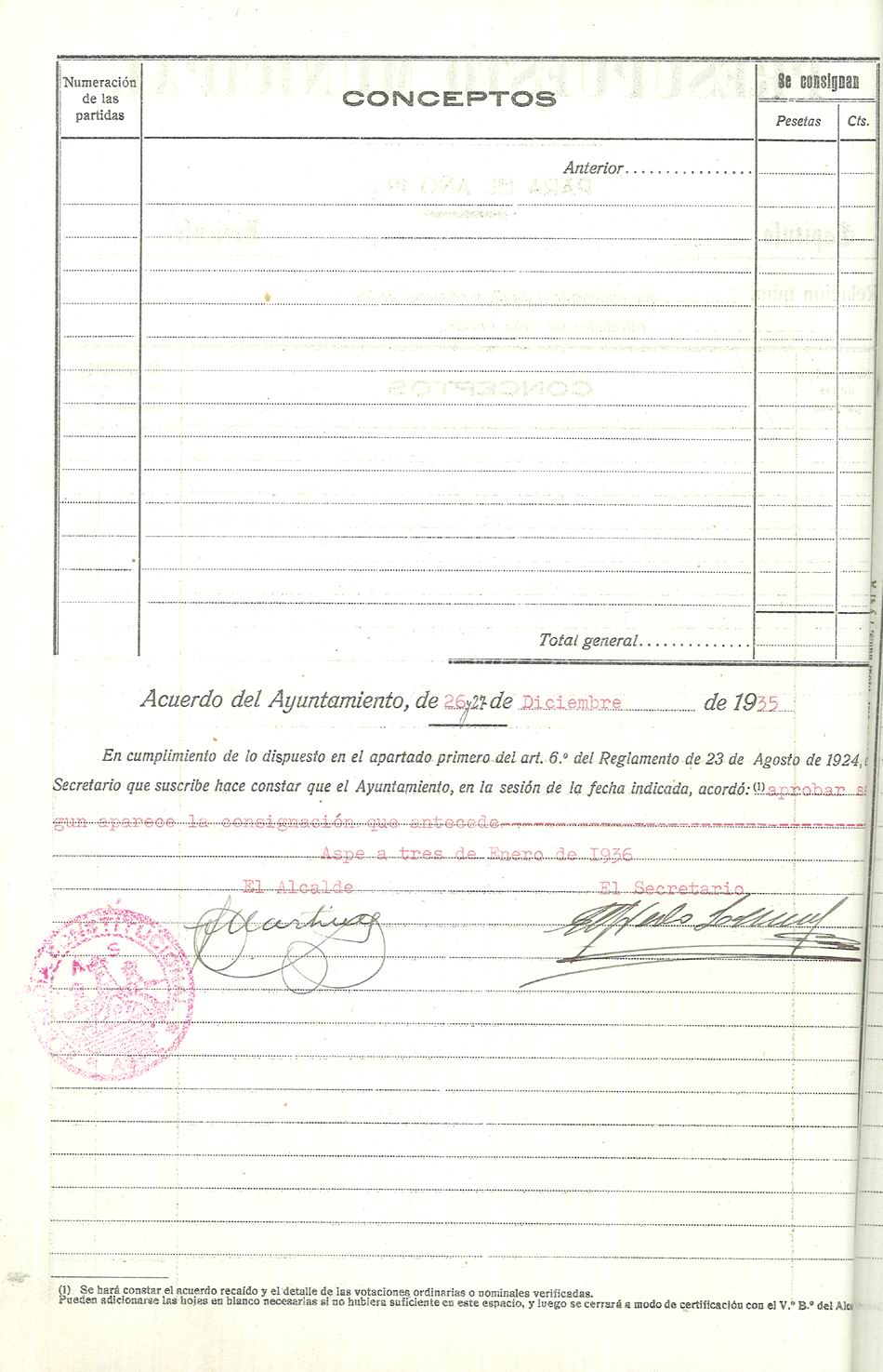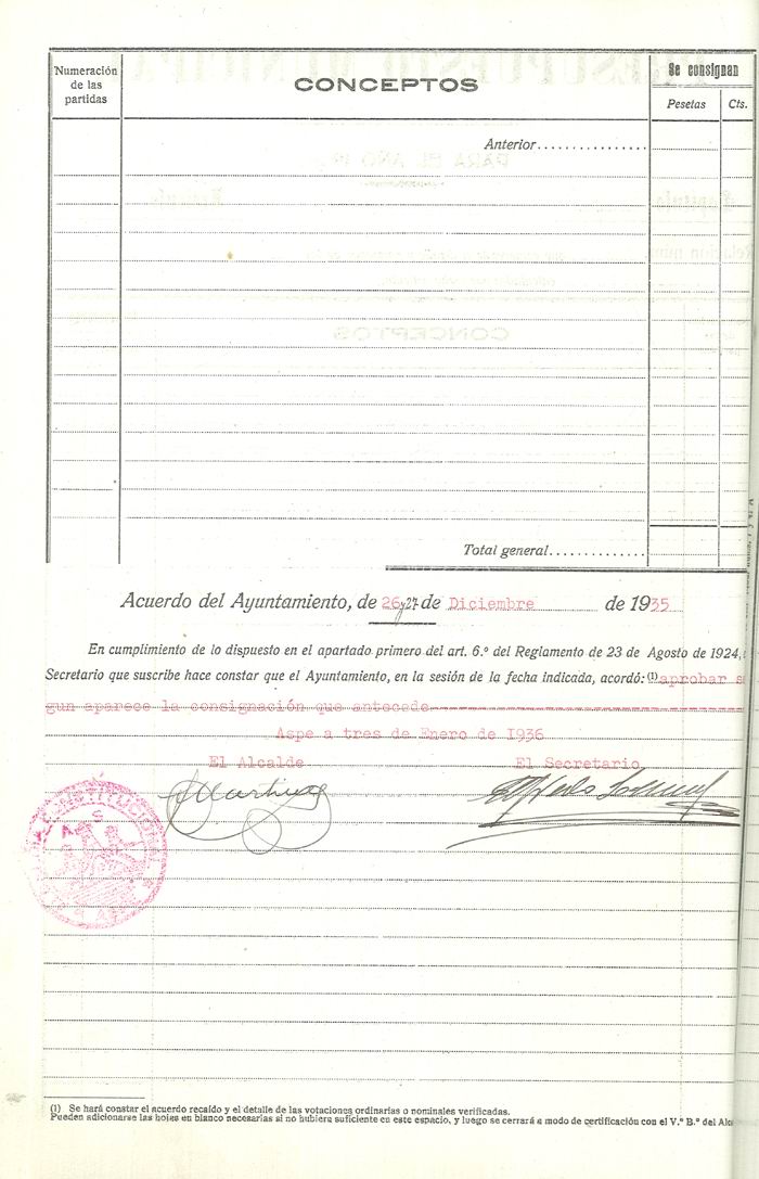 Presupuesto municipal ordinario del Ayuntamiento de Aspe para el año 1936