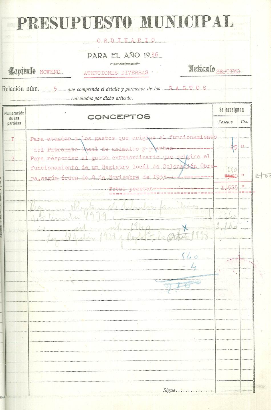 Presupuesto municipal ordinario del Ayuntamiento de Aspe para el año 1936