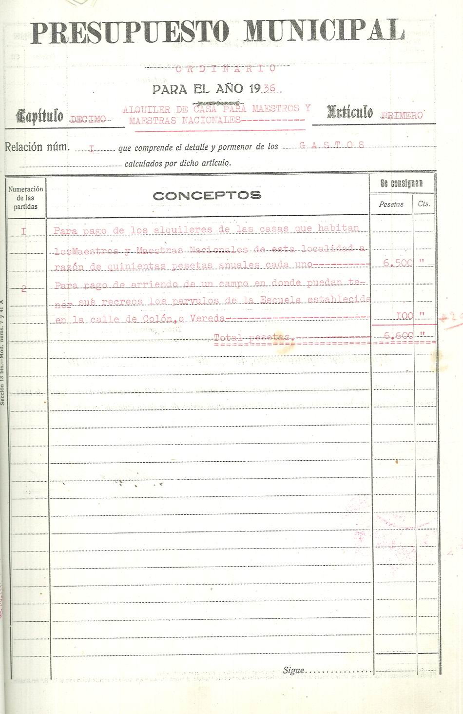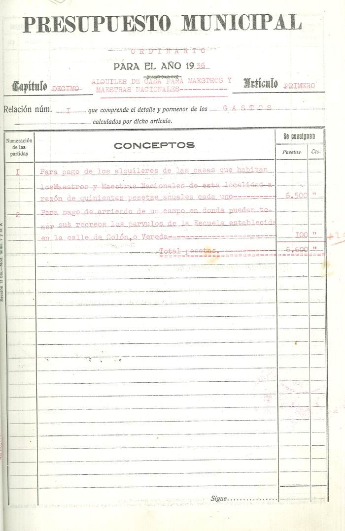 Presupuesto municipal ordinario del Ayuntamiento de Aspe para el año 1936