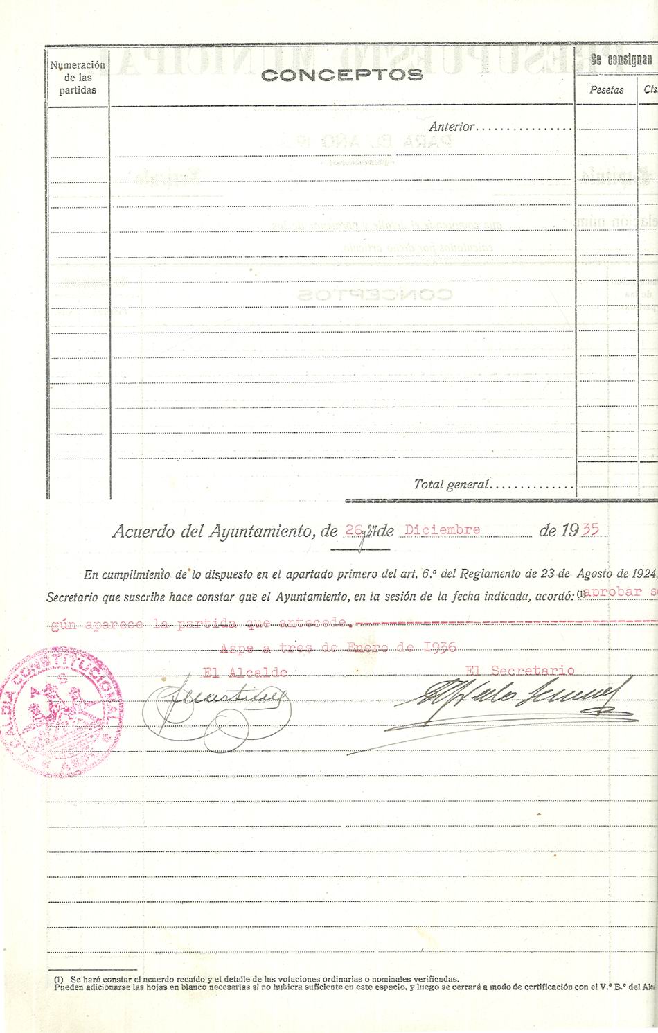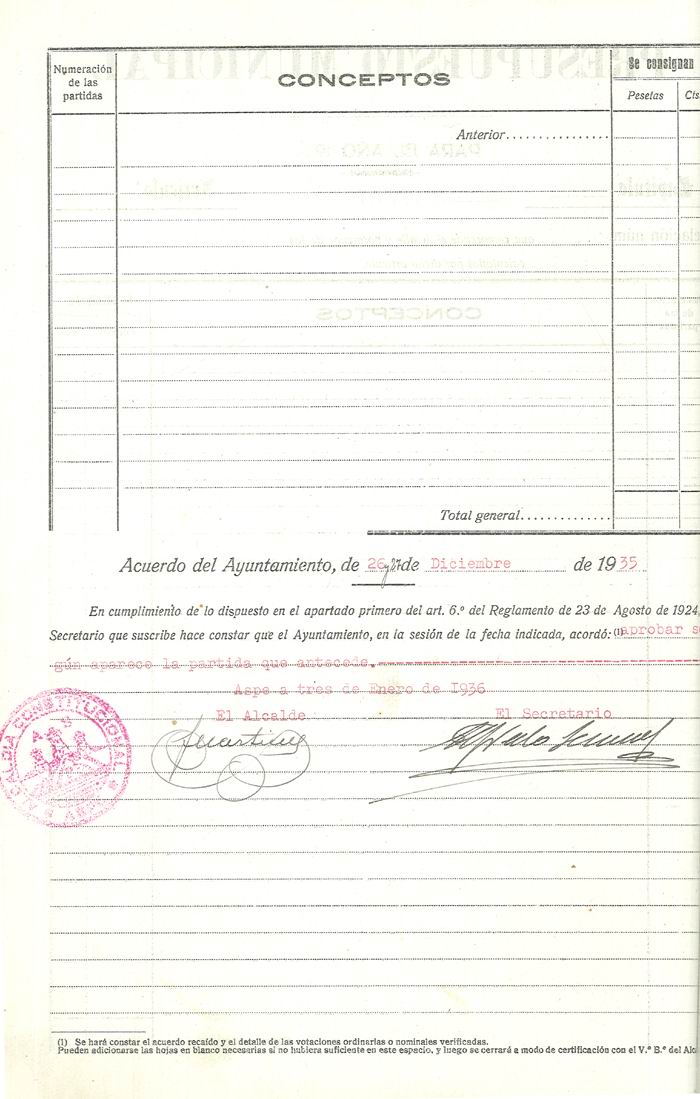 Presupuesto municipal ordinario del Ayuntamiento de Aspe para el año 1936