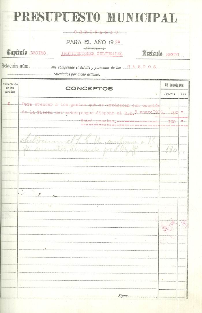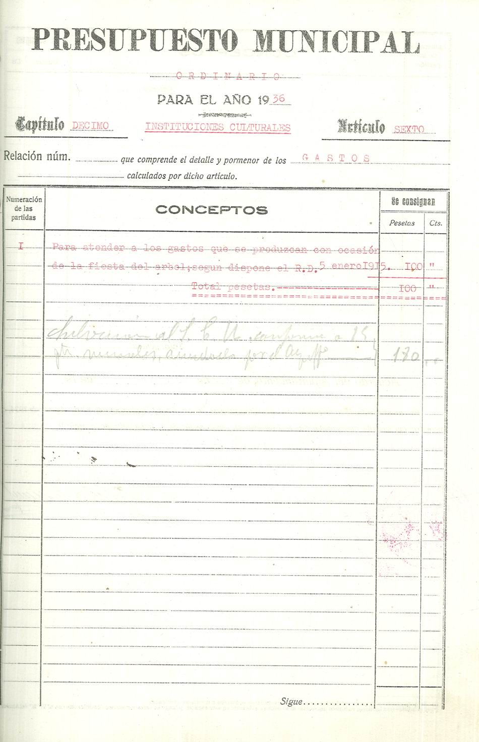Presupuesto municipal ordinario del Ayuntamiento de Aspe para el año 1936
