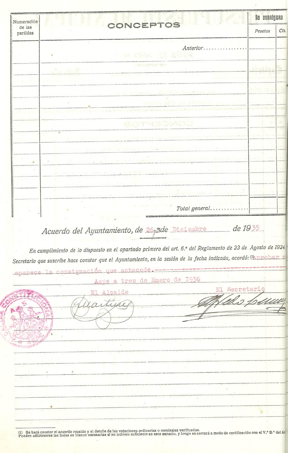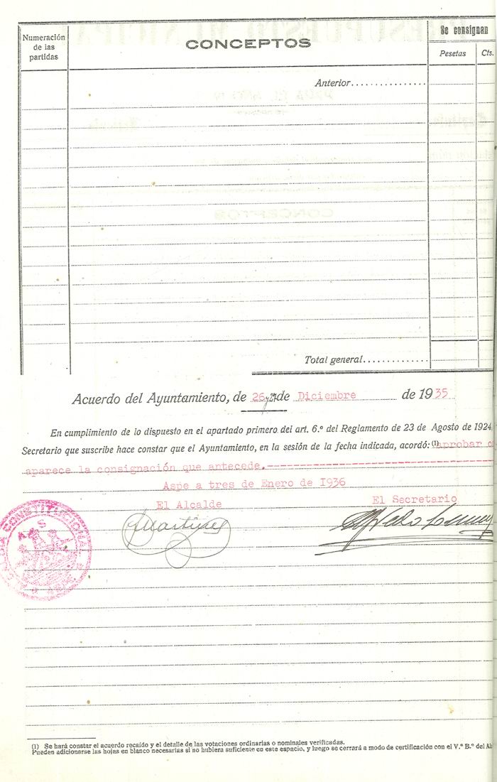 Presupuesto municipal ordinario del Ayuntamiento de Aspe para el año 1936